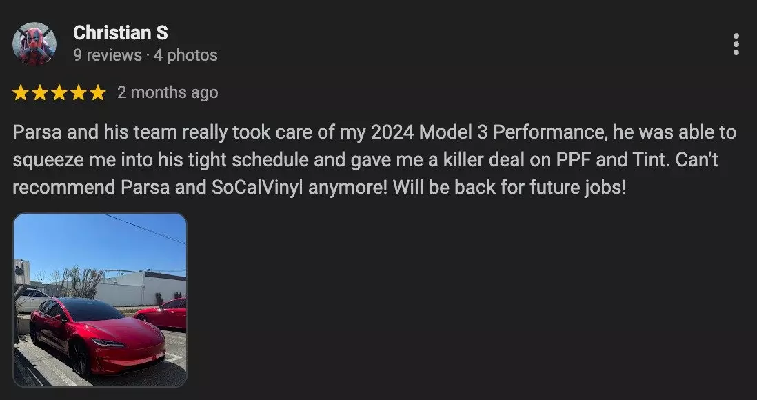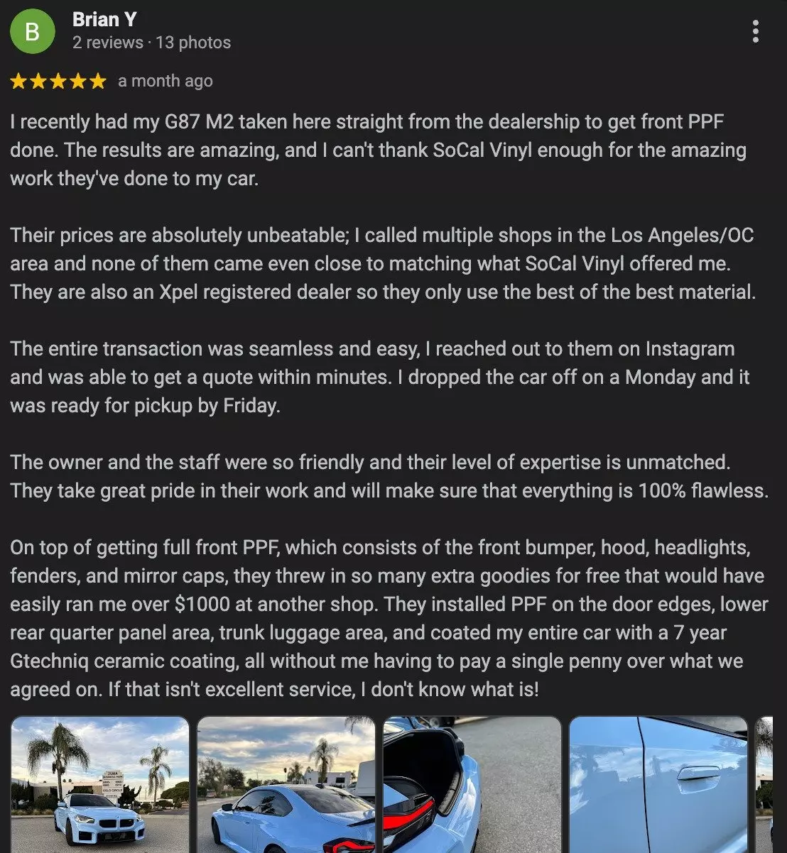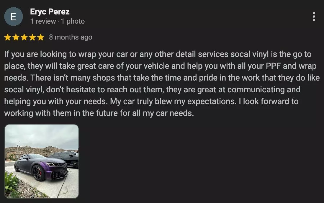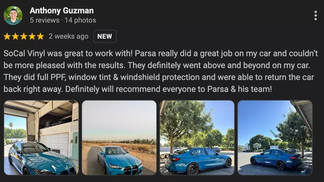 We have spent years mastering the craft of professional PPF installation. This includes tucking in edges, wrapping corners, deleting unnecessary seams, and getting proper edge alignments. You are guaranteed the best PPF installation in SoCal righ here at Socal Vinyl in Anaheim Hills Ca.